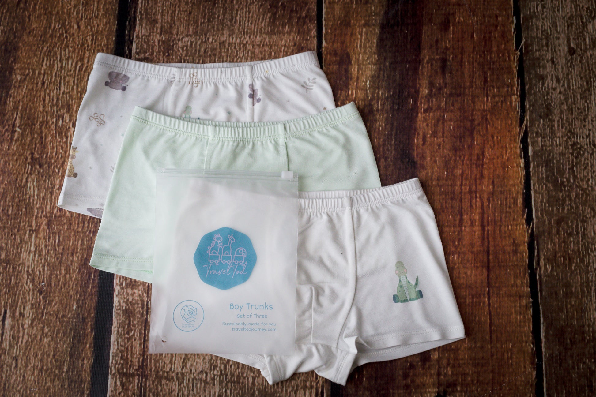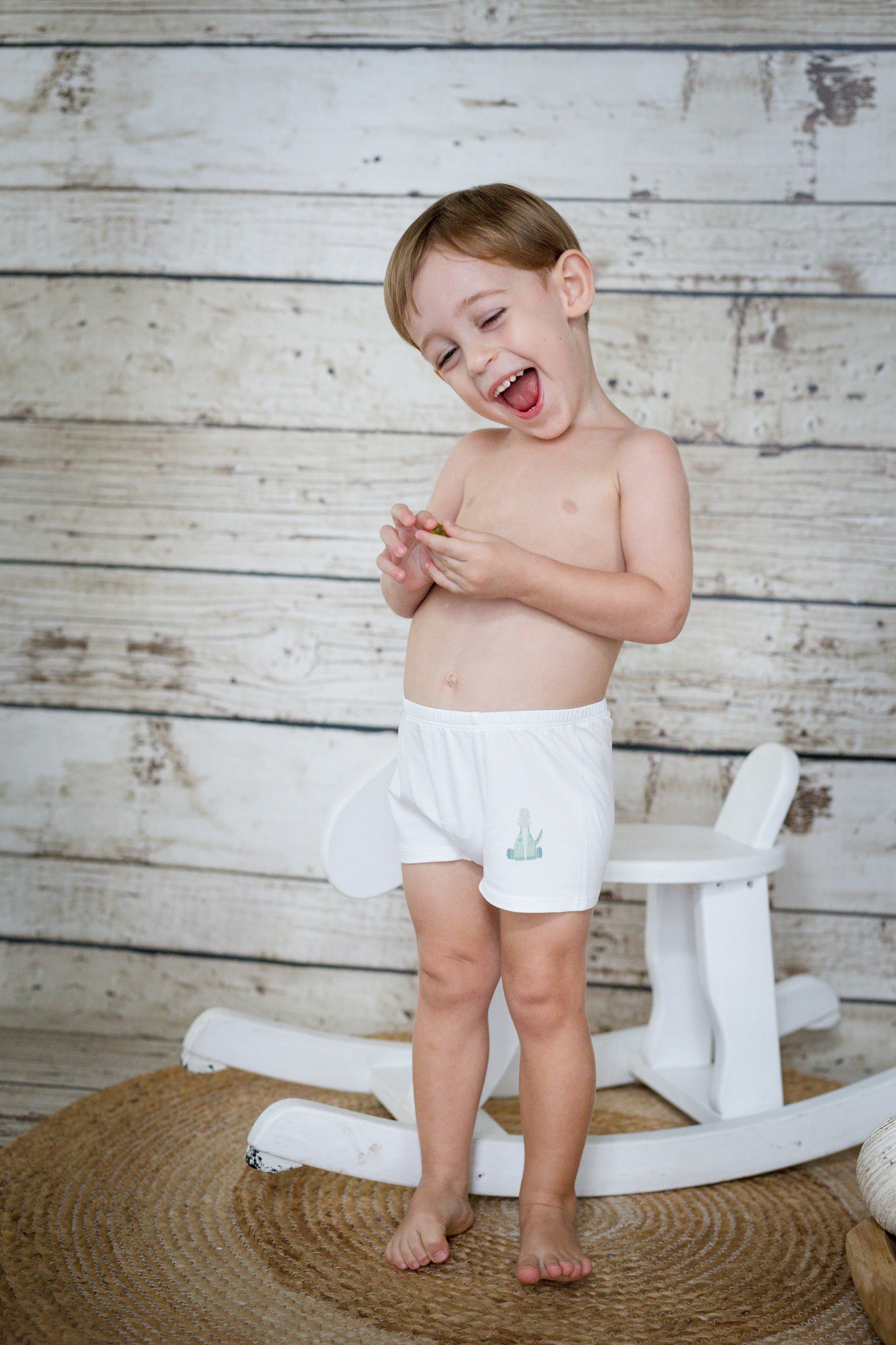 A set of three soft boy underwear trunks are a must-have baby essential for boys transitioning from babyhood to toddlerhood, leaving diapers behind! Crafted premium - a bamboo baby clothing with a touch of stretch, they offer the perfect blend of comfort and breathability. Hypoallergenic and antibacterial, these trunks are ideal for sensitive skin, keeping toddlers cool and quickly dried thanks to bamboo's moisture-wicking properties.