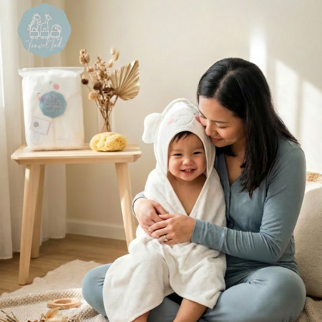 Snuggle up your little one in our Moso Elephant Hooded Towel for a soothing post-bath experience -where cuddly and fluffy meets comfort!